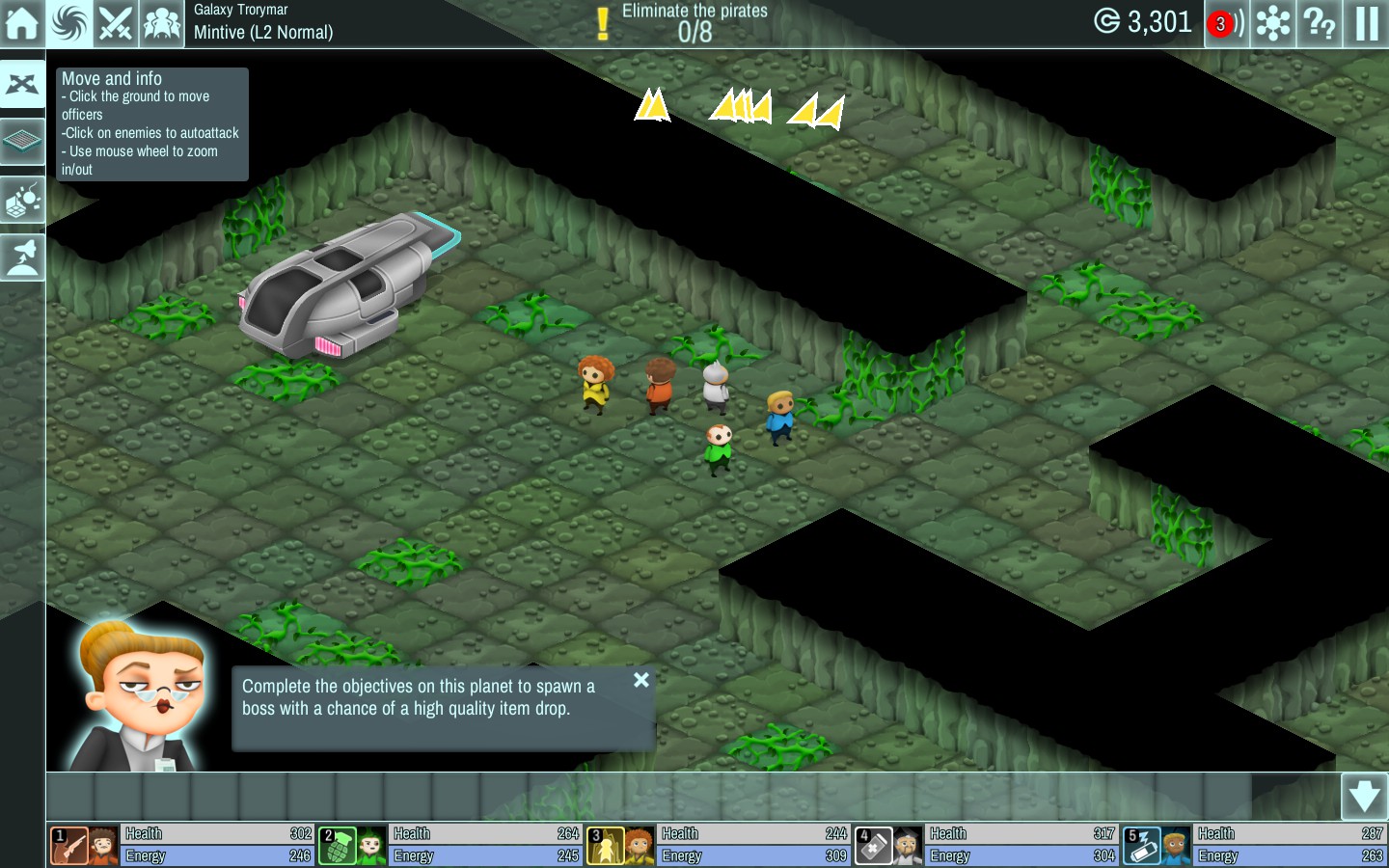 Played in real time with your station means you can switch back and forth between the two parts of the game, checking on a buildings progress, or tweaking the station a bit before jumping back into the mission at hand. Again the controls on the away team are a little basic, you essentially click where you want to move your squad and click on enemies to attack them, with 1-5 used for the special skills. It has a faint cannon fodder feel to it albeit in an isometric perspective.