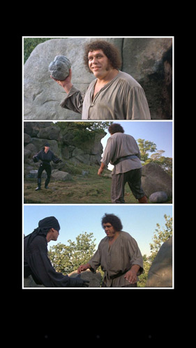 The fourth and currently final mini game is the Battle of Strength where you square off against Vizzini’s Giant. Again the game is relatively simplistic in its control method either swipe left, right or up dependant on Fezzik’s stance and then put him in a sleeper hold. Rinse, repeat.